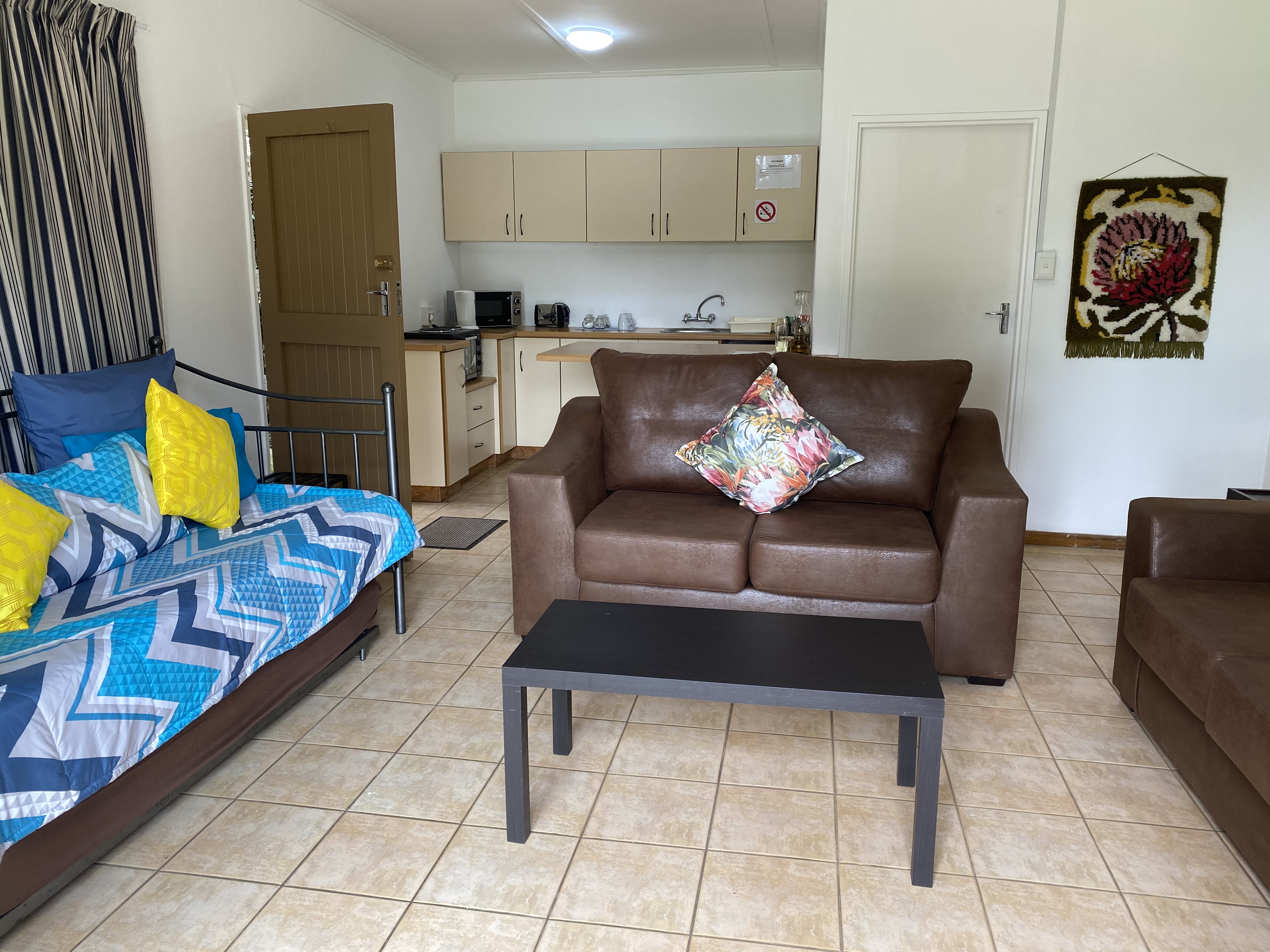 A one bedroom cottage sleeps 4, a one bedroom unit sleeps 5 and a cosy room sleeps 2. The cottage and unit have day beds in the open plan lounge/kitchenette and both have two bathrooms each.