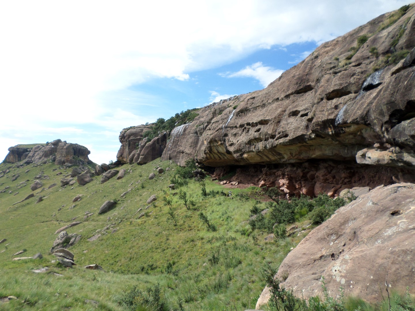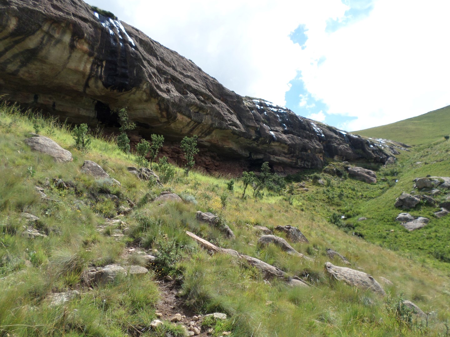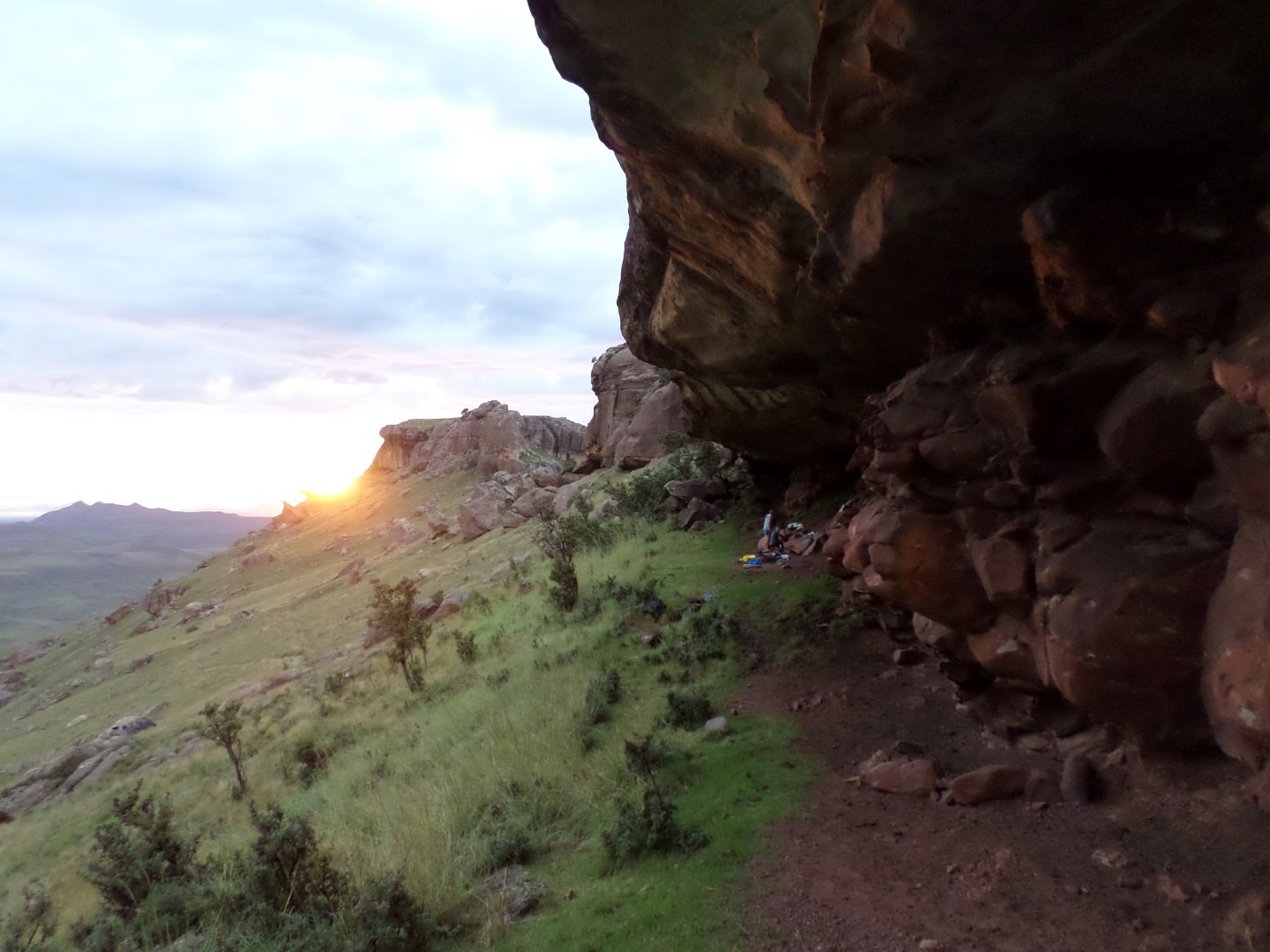 Thamathu Cave is in the Bushmans Nek area. The cave is about 7km from the parking lot and its uphill almost all the way to the cave. Further on from the cave is Thamathu pass. The cave is large, split into 4 sections and a semi level area near the front. The views and sunrise from the cave make the hike up the hill worth while.